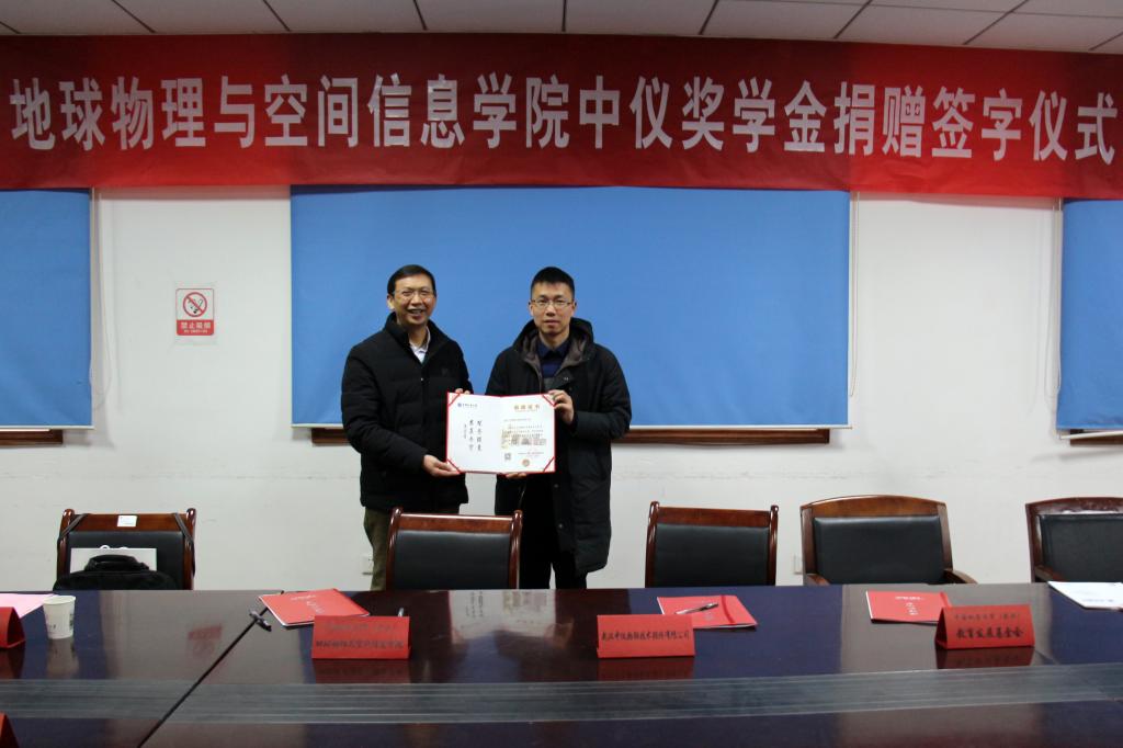 据悉,中仪奖学金由1997级校友郑洪标单独设立,以公司名称命名,总金额10万元,用于奖励3-4名第一志愿报考地空学院的优秀新生,资助其大学期间的学费。