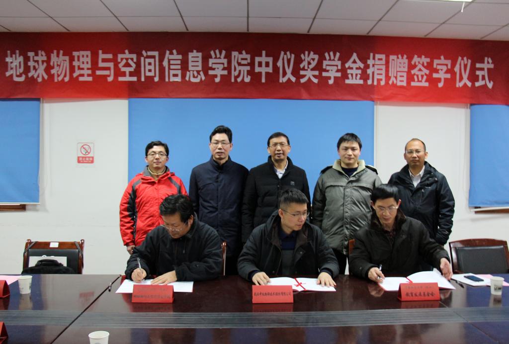 (通讯员 李周波 摄影 祁阳阳)2018年1月5日下午四点,地空学院“中仪奖学金”捐赠仪式在物探楼214会议室举行。武汉中仪物联技术股份有限公司董事长郑洪标,总经理助理张婉珈,校党委副书记、纪委书记成金华,学校教育发展基金会副秘书长李门楼,地空学院党委书记刘子忠、副书记李周波、教师代表王毅教授、张学强副教授、张世晖副教授、辅导员祁阳阳、学校教育发展基金会工作人员等参加座谈会。会议由李周波主持。
