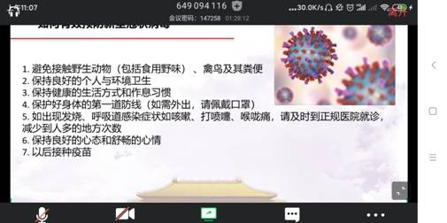 为深入推进“坚定信心、主动作为、共同抗‘疫’”主题教育,提高学生党员的政治素养与党性原则,根据中共中央《关于加强党的领导、为打赢疫情防控阻击战提供坚强政治保障的通知》和中共湖北省纪委机关、省委组织部有关文件要求,2020年2月27日,在地探专业硕士研究生纵向党支部书记郭楚枫同志的组织下,williamhill中文地空学院地探专业硕士研究生纵向党支部开展“众志成城,抗击疫情,武汉必胜”学习活动,邀请优秀党员志愿者刘汉生同志直播疫情下的武汉小区;学习贯彻习近平在统筹推进新冠状肺炎疫情防控和经济社会发展工作部署会议上的重要讲话精神;介绍新冠状肺炎,探讨了作为一名党员面对疫情应尽的职责;最后介绍了一些常见的病毒,以及“糖丸爷爷”顾方舟研究疫苗的故事。
