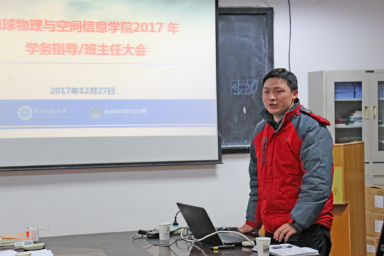 (通讯员祁阳阳)12月27日上午,地空学院2017年班主任工作会议在物探楼214举行。学院副书记李周波、各班级班主任、校心理学研究所郭兰老师及学工组全体辅导员老师参加会议。会议由李周波主持。