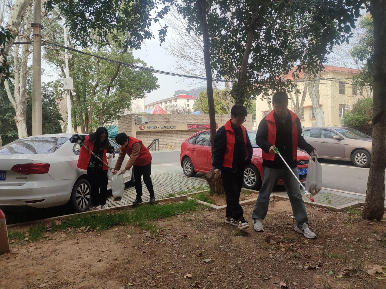 为了让植物回归应有的“绿色”,支部成员齐心协力、干劲十足,认真清扫白色垃圾。