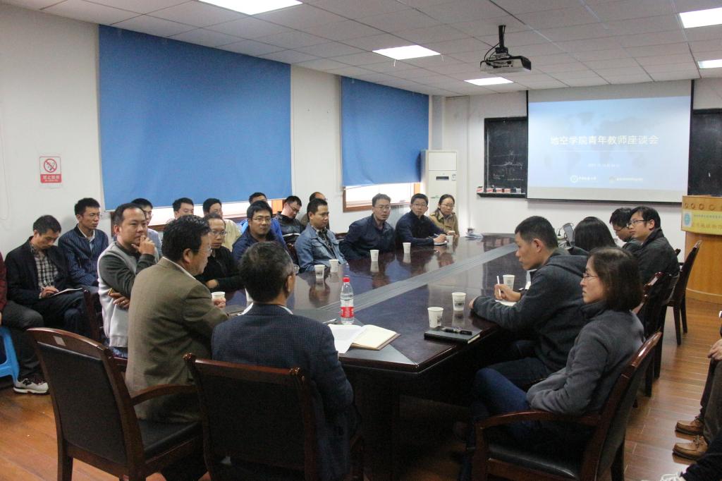 刘子忠书记首先向各位青年教师介绍了近几年来学院教师入职情况。他提到,近几年来,地空学院在人才引进方面取得较大的发展和突破,青年教师队伍不断壮大,教师年龄、学历等结构不断优化,也相信在全体教师的共同努力下,学院办学水平和教学质量一定会得到长足的发展和进步,希望青年教师畅所欲言,为学院共同发展献计献策。