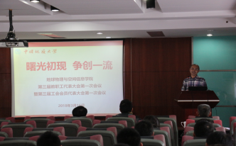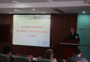 (通讯员 张川 李周波)2018年3月15日下午,地空学院在物探楼222会议室顺利召开第三届教职工代表大会第一次会议暨第三届工会会员代表大会第一次会议,会议主题为“曙光初现,争创一流”。副校长刘勇胜、校工会副主席高复阳、学院班子成员以及学院全体教职工参加此次会议。会议由学院党委副书记李周波主持。