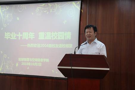 学院院长胡祥云致欢迎词,介绍学校、学院发展情况。他首先对校友返校表示欢迎,面对昔日的同学们感慨万千,他回忆起地空学院从仅60人的小院发展到了百余人规模艰辛的发展历程。他指出,地空学院的发展,与校友们息息相关,希望多关注和支持学院,为学院的发展建言献策,贡献力量。