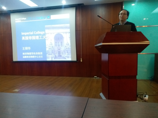 王仰华教授首先向在场的师生介绍了英国帝国理工大学的主要情况,接着王仰华教授介绍了一种提高页岩油藏地震分辨率的新方法新技术,该技术是一种用于增强三维地震分辨率的全频带拓展方法技术,主要包括地震子波提取、频带拓展滤波器的创建和数据滤波三个实现步骤,王仰华教授最后介绍了该方法技术在提高页岩油藏地震分辨率的应用实例。