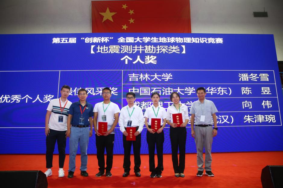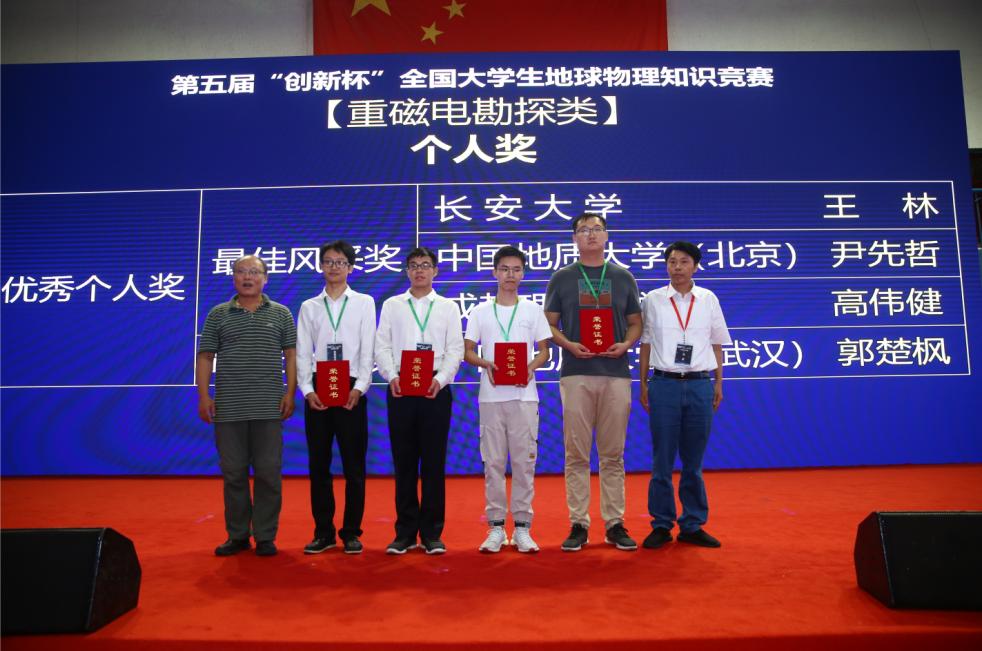 由师学明教授指导,硕士生郭楚枫、黄亮,本科生武雨纯、薛纪岩组成的代表队荣获重磁电勘探类比赛特等奖;由谢祖军副教授指导,硕士生谢媛、本科生郑瑞、唐笑天、林厚羽组成的代表队荣获固体地球物理类比赛一等奖;由朱培民教授指导,本科生朱津琬、张金晗、靖剑坤、关玉蕊组成的代表队荣获地震测井勘探类比赛一等奖。地空学院2018级硕士生谢媛荣获最佳风采奖,2018级硕士生郭楚枫、2016级本科生朱津琬荣获最佳个人奖。学校代表队由地空学院执行院长熊熊教授领队。