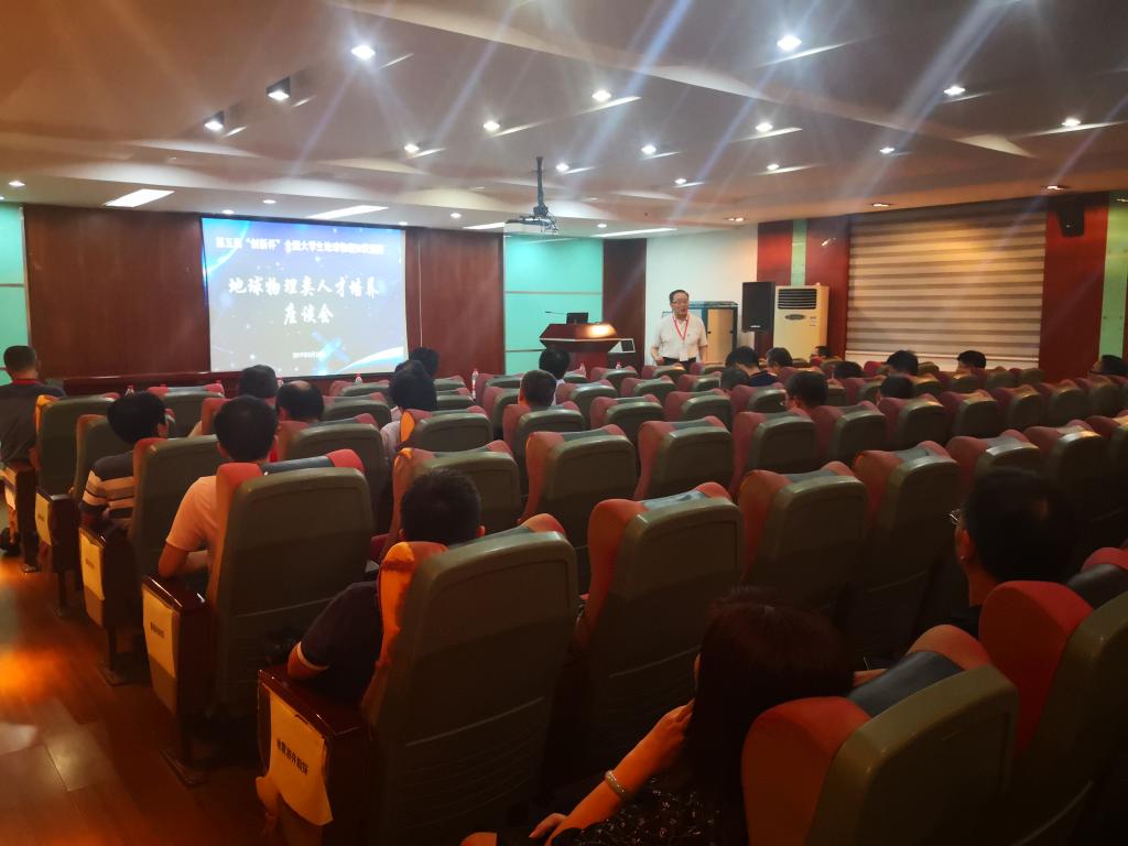 (通讯员 祁阳阳 李晟  摄影 张凤珠)在第五届“创新杯”全国大学生地球物理知识竞赛举办之际,地球物理类人才培养座谈会于8月24日晚在我校物探楼报告厅举行。竞赛部分专家评委及地球物理行业相关企业代表参加座谈。座谈会由我校地空学院教授、人事处处长胡祥云主持。
