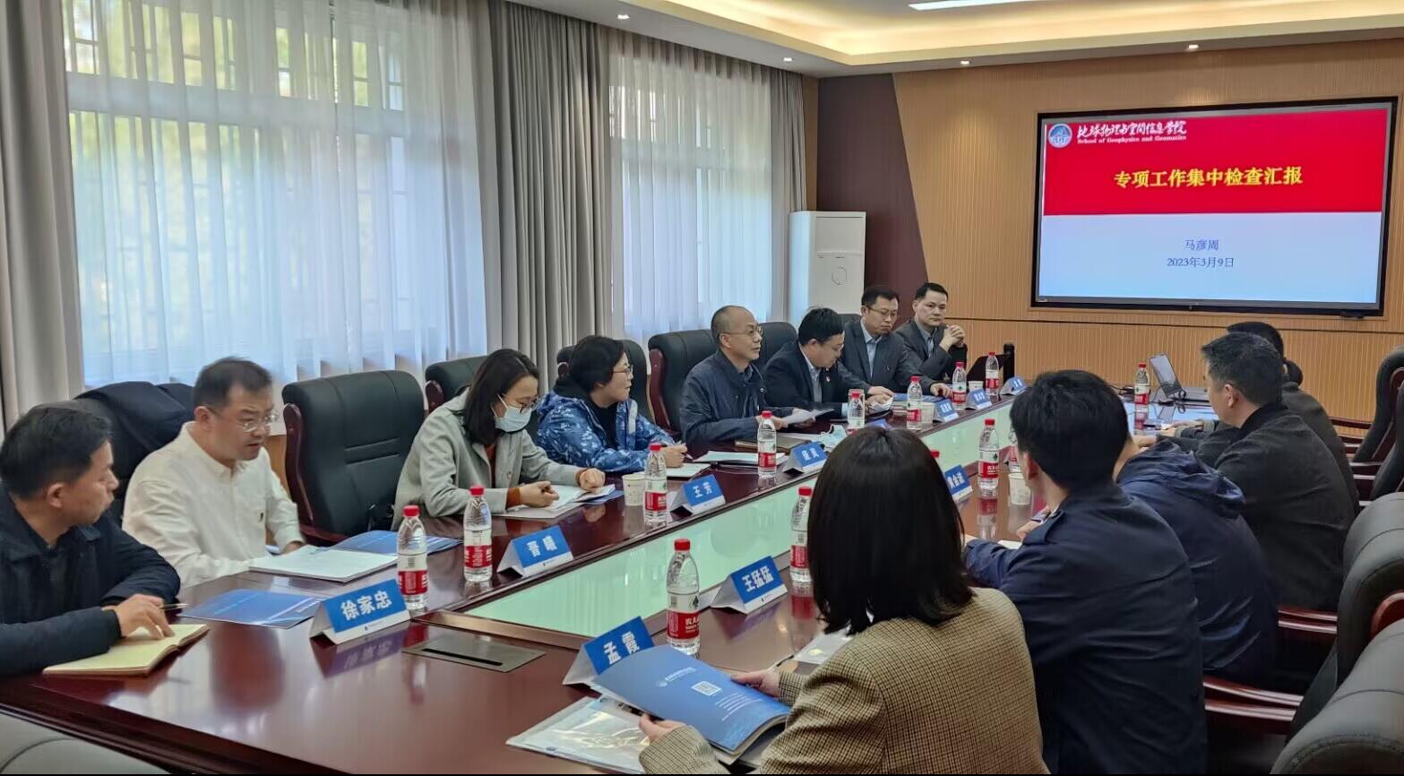 39日,根据学校党委工作部署,为进一步督促巡视巡察整改,深入推进学习宣传贯彻党的二十大精神、扎实做好开学“第一课”,学校党委对各二级党组织进行集中专项检查。校党委常委、副校长刘勇胜带队对我院工作进行督查检查,学院党委书记马彦周、副书记黄金波,副院长严哲、陈丽霞参加检查汇报。