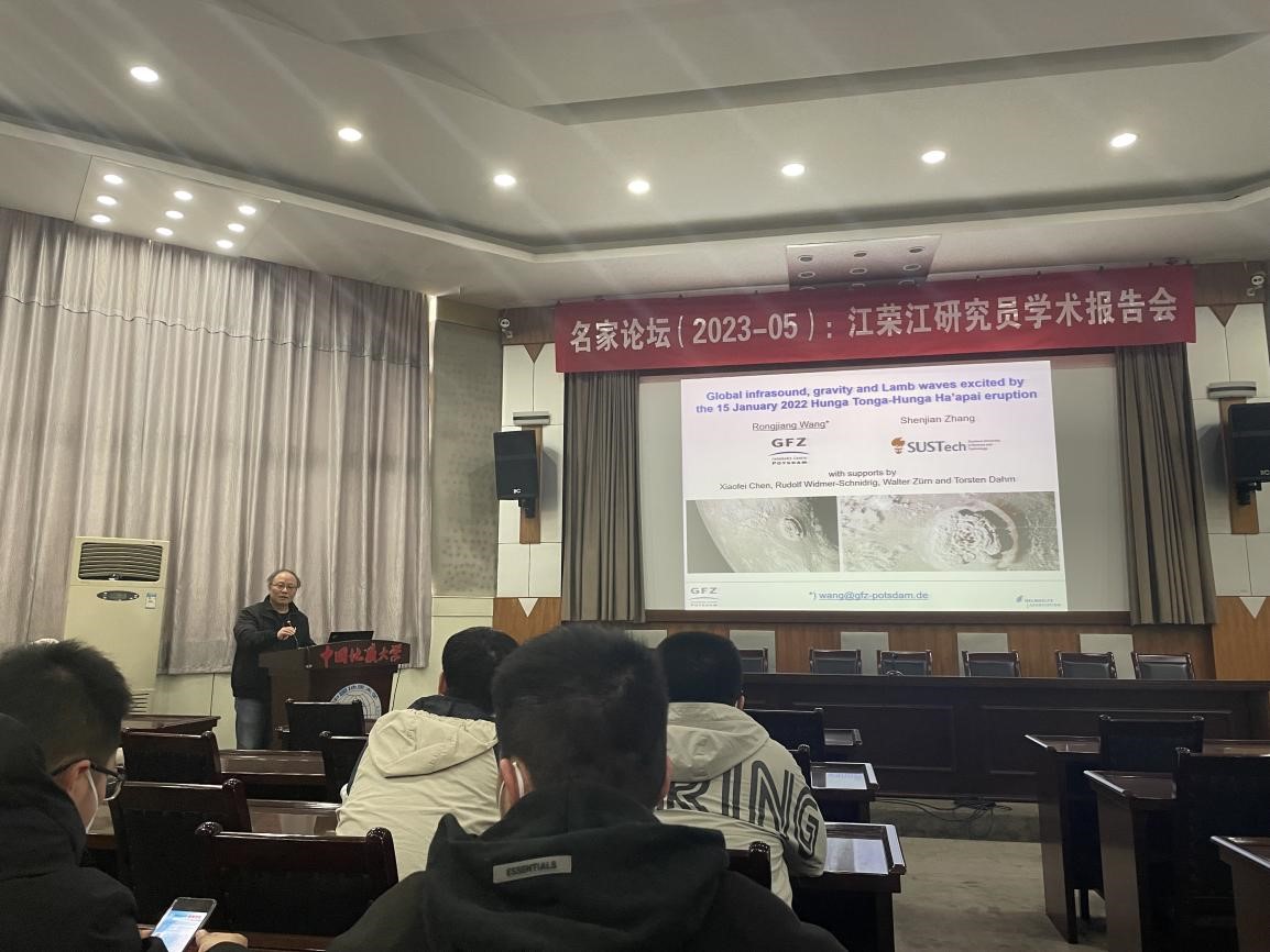 (通讯员 郑勇)应williamhill中文“名家论坛”和william威廉中文熊熊教授、胡祥云教授邀请,德国地学中心(GFZ)资深研究员国际著名地球物理学家汪荣江教授于2023年3月17日来校访问,在地质大学东区八角楼学术报告厅以“2022年1月15日汤加火山爆发引起的全球大气次声波、重力波和Lamb波”为题做了精彩的学术报告。