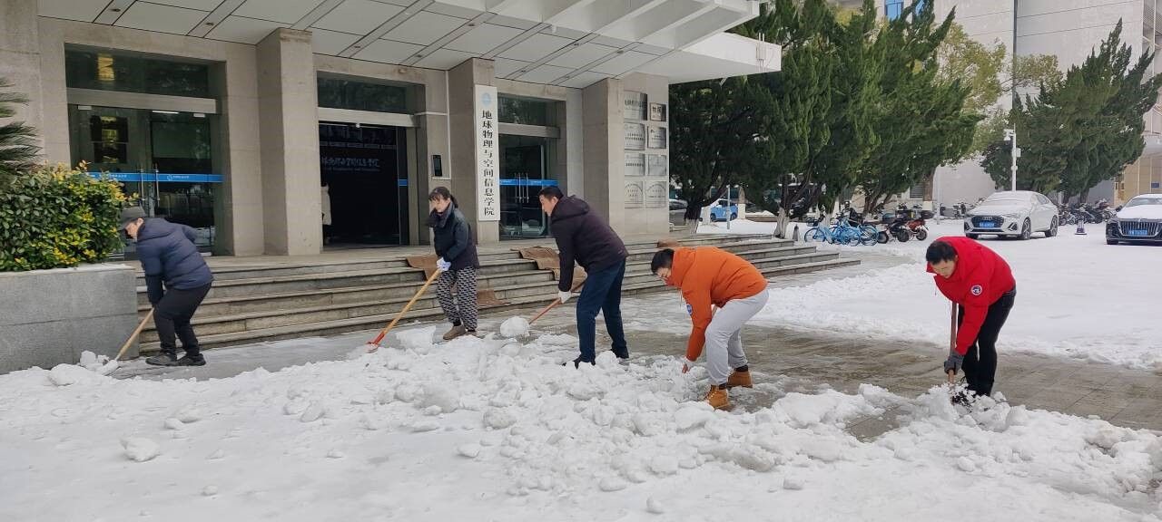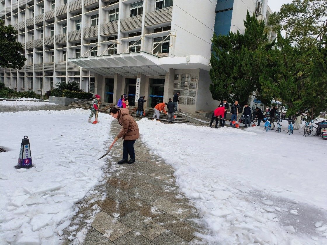 (通讯员 祁阳阳)时值新学期开学,武汉出现新一轮低温雨雪冰冻天气。学院迅速部署,于2月23日上午组织教工党员进行清雪除冰工作,消除路面隐患,清通物探楼、基础楼等楼栋进出通道,确保师生安全出行。