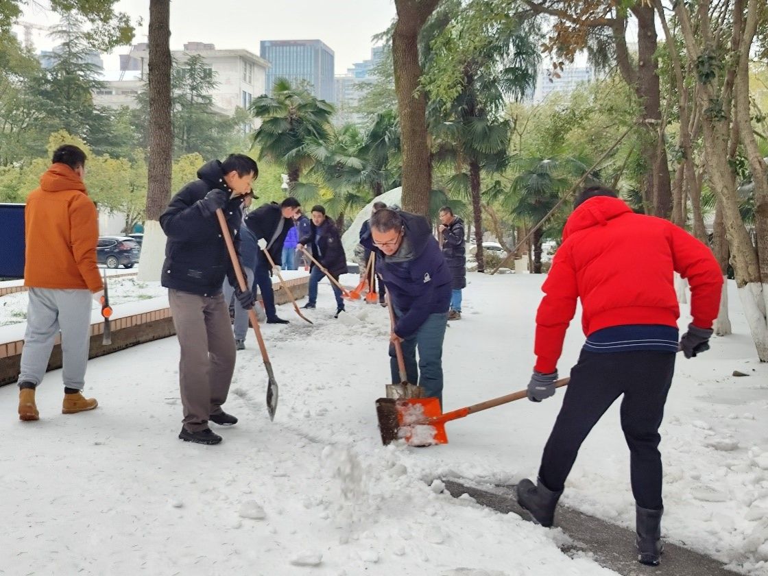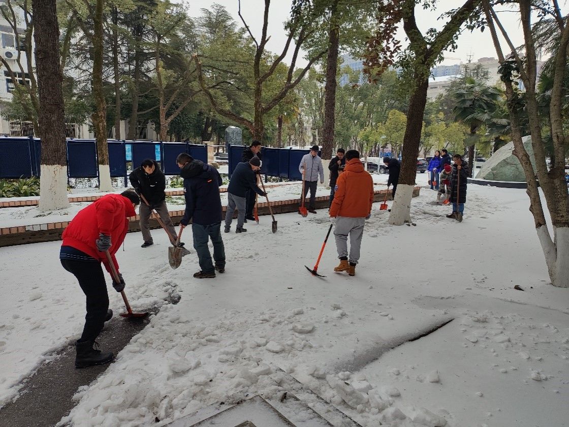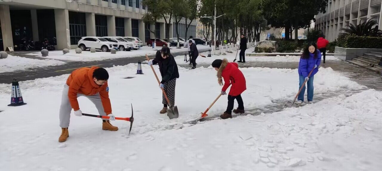 据悉,学院按照学校要求组建应对低温雨雪冰冻天气党员应急预备队,应对极端天气防范和春季开学安全保障,并于2月22日开始参与校园扫雪除冰清枝工作。