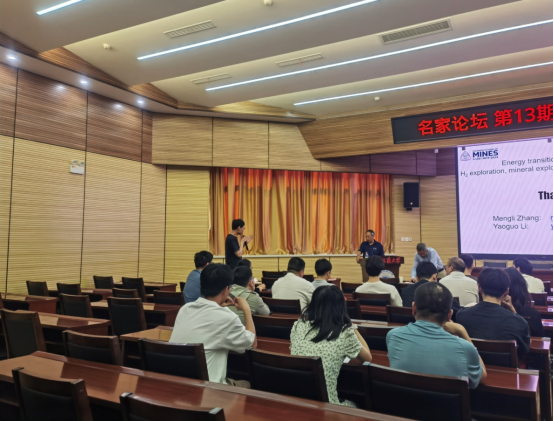 交流环节,李耀国教授就遍历采样技术的原理应用、未来发展以及如何寻找科学问题、如何把握科学前沿、地质氢勘探前景等内容和与会师生进行了亲切的交流讨论。李耀国教授鼓励青年教师和学生勇于跳出固有思维模式、开创新的研究领域,立足于勘探地球物理,为实现能源转型及碳中和目标做出更大贡献,现场反响热烈。