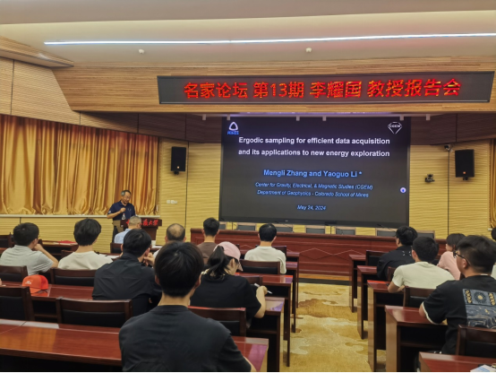 (通讯员 刘双)2024年5月24日下午,应william威廉中文胡祥云教授和刘双教授邀请,美国科罗拉多矿业学院地球物理系教授、重磁电研究中心主任、我院83届杰出校友李耀国教授到访我校,在南望山校区东区八角楼学术报告厅,做了题为“Ergodic sampling for efficient data acquisition and its applications to new energy exploration(高效数据采集的遍历态采样及其在新能源勘探中的应用)”的专题学术报告,向到场师生们介绍了一种全新的高效地球物理数据的采样方法,并结合当前新能源勘探领域的前沿讲解了其方法的应用。论坛由胡祥云教授主持。