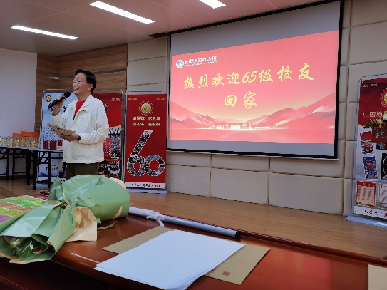 庆祝大会上,出席聚会的校友逐一介绍自己的基本信息:入学时的学号和工作单位并发表简短感言。从这些老校友的介绍中可以看出,很多同学在地质找矿一线辛勤劳作几十年,为国家地球物理找矿事业奉献了自己的青春年华。有的同学响应国家改革开放号召,在市场经济的大潮中奋力拼搏,为国家经济建设和社会发展做出了积极贡献。
