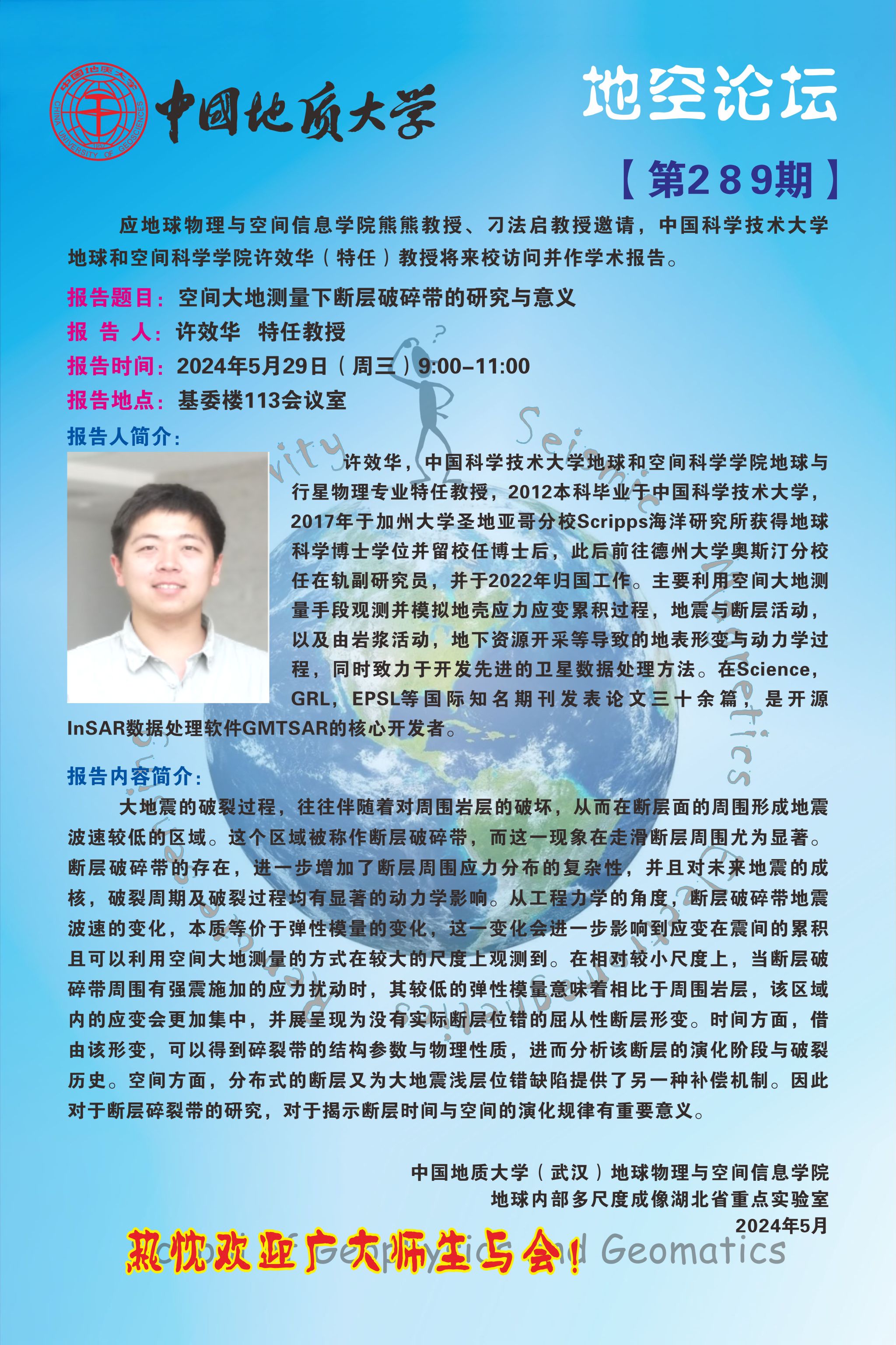 地空论坛【第289期】中国科学技术大学 许效华 特任教授
